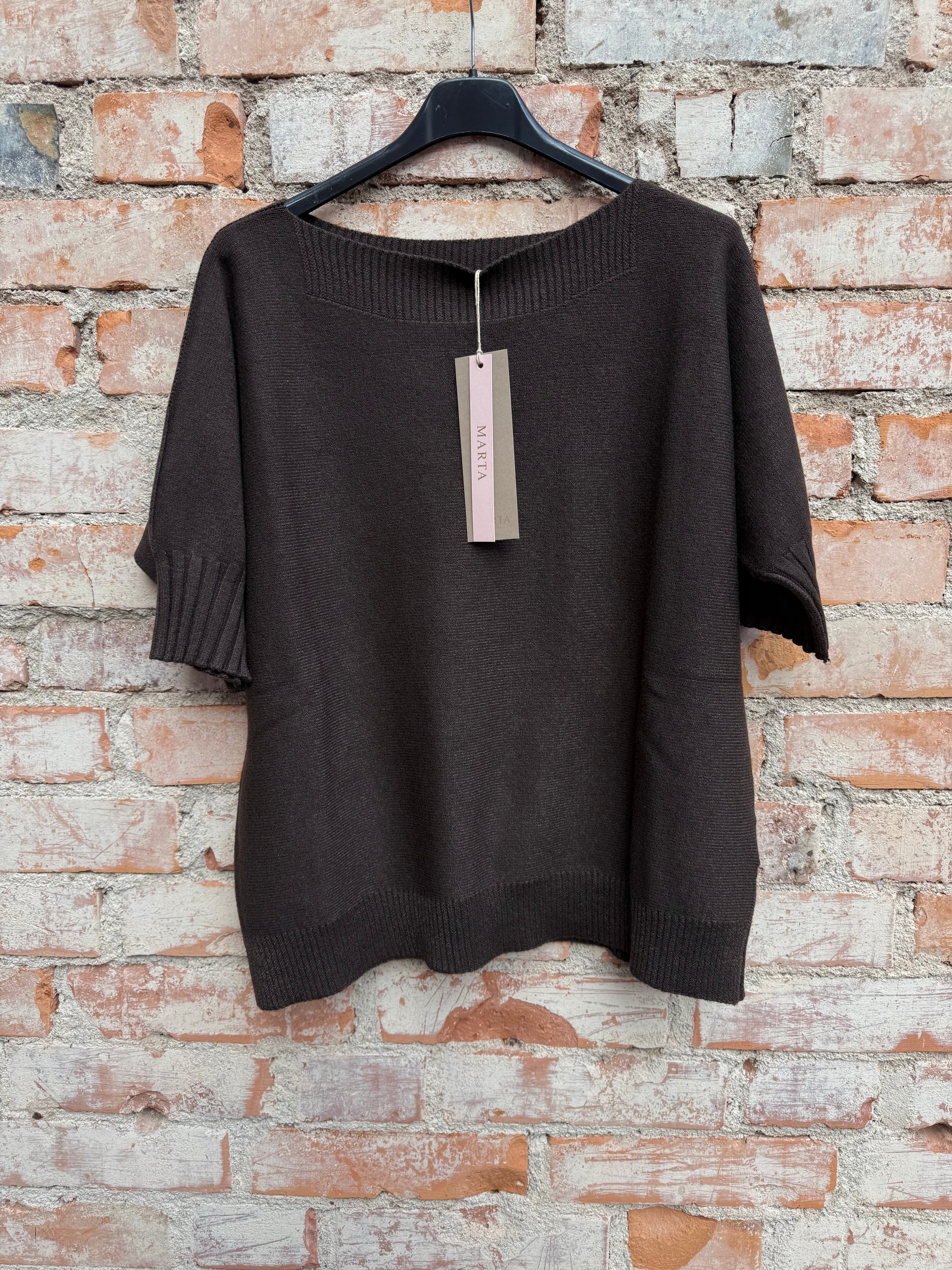Kortärmad finstickad tröja - brun
